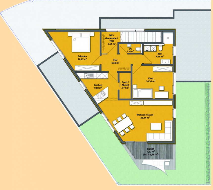Diese Wohnung liegt im Obergeschoss einer sehr attraktiven Wohnanlage im Hauptort der Gemeinde Wilhelmsdorf.