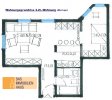 Die Wohnung ist wie folgt aufgeteilt: Eingang/Flur, Badezimmer (Badewanne mit Duschabtrennung, Waschbecken, WC und Anschlussmöglichkeit für Waschmaschine + Wäschetrockner), Schlafzimmer, großzügiger Wohn-/Essbereich mit „halboffener“ Küche. In der dazu gehörenden „old-style“ Einbauküche, welche zum Essbereich mit einer Theke abgeteilt ist, wurde erst vor Kurzem eine neue Abzugshaube sowie ein neuer Kühlschrank eingebaut.
