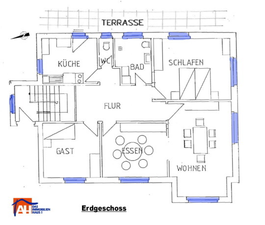 Massivbauweise, Gas-Zentralheizung, kleine Terrasse + Gartennutzung, klassischer "Fischgrät"-Parkett im Flur sowie sämtlichen Wohn- und Schlafräumen Wohn- und Schlafzimmer, Tageslichtbad + Gäste-WC, Einbauküche, Kabelanschluss für Radio/TV