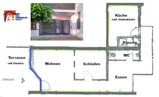 Zentralheizung, Küche mit neuer Einbauküche,Kabelanschluss für Radio/TV, Terrasse mit Markise