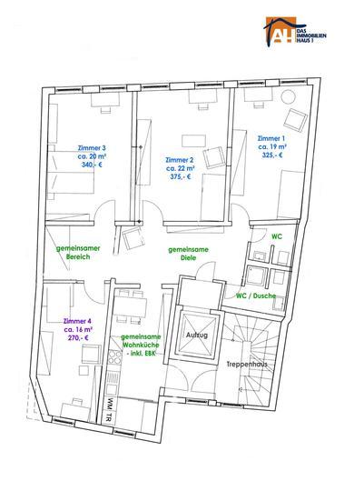 | Monatsmiete kalt | 325 € |