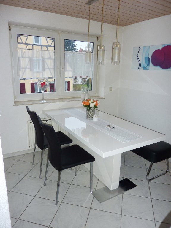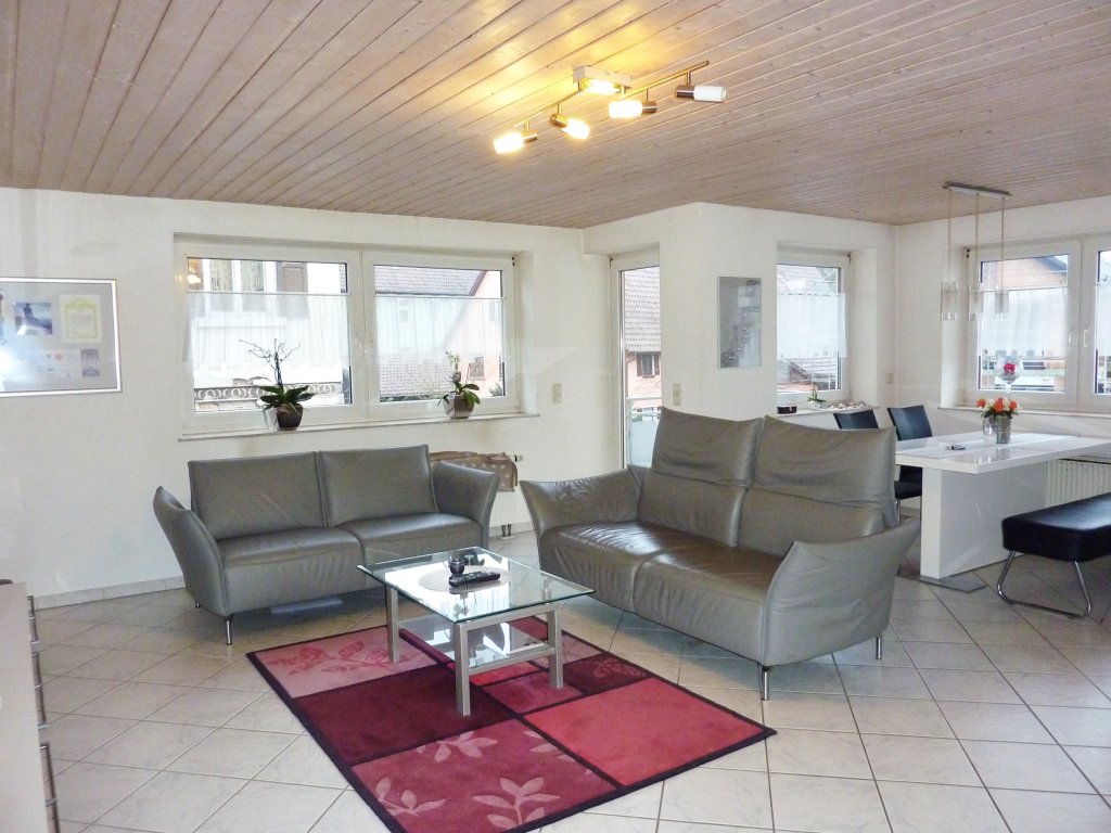 Diese Wohnung liegt - zusammen mit einer weiteren Wohnung - im 1. Obergeschoss eines kleinen Mehrfamilienhauses in der Ortsmitte des Mengener Teilortes „Rulfingen“. Die Wohnung ist nach Süden bzw. Westen ausgerichtet. Sie ist sehr gepflegt und gut ausgestattet, so z.B. mit Laminat- bzw. Fliesenböden, Wänden mit Rauputz und elektrischen Rollläden.
