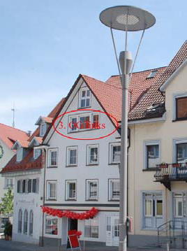 Diese zwar einfache, aber "schnuckelige" Wohnung befindet sich im Dachgeschoss (3. Obergeschoss - ohne Aufzug) eines Wohn- und Geschäftshauses mit nur sechs Parteien "mitten" in Tettnang. Die Wohnung liegt auf der Westseite des Hauses.