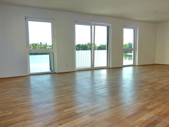 Neubau-Erstbezug! Effizienzhaus "KfW 50", massive Bauweise, solarunterstützte Gas-Zentralheizung, Fußbodenheizung, kpl. Parkett, Holz-Aluminium-Fenster, zwei Balkone mit freiem Blick auf den Stadtsee!
