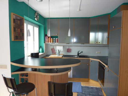 Dachgeschos (2.Stock), sehr hochwertig ausgestattet, u.a. kpl. Parkett, offener Kamin, Einbaumöbel, Tageslichtbad mit Badewanne + Dusche, zus. sep. WC im Schlafbereich, hochwertige, moderne, Einbauküche (mit Marken-Elektrogeräten), geschützte Süd-Loggia + 2 kl. Balkone mit Bergsicht, Kabelanschluss für Radio/TV