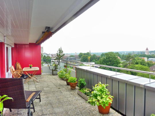 Diese, mit dem Aufzug erreichbare, Wohnung befindet sich im obersten, dem 8. Geschoss eines Wohn-/Geschäftshauses am nördlichen Rand der Ravensburger Altstadt/Stadtmitte. Der Marienplatz ist in ca. 300 m fußläufig erreichbar. Sie ist ruhig und perfekt ausgerichtet mit einer großen (Dach)Terrasse nach Westen.