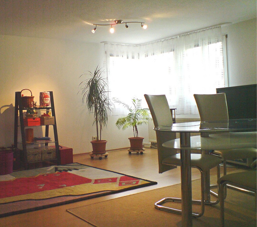 Im Wohnzimmer ist ein Buche-Laminatboden verlegt. Die Wohnung besitzt eine eigene Heizung (Gasetagen-Zentralheizung).