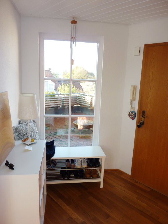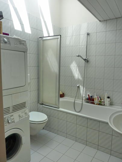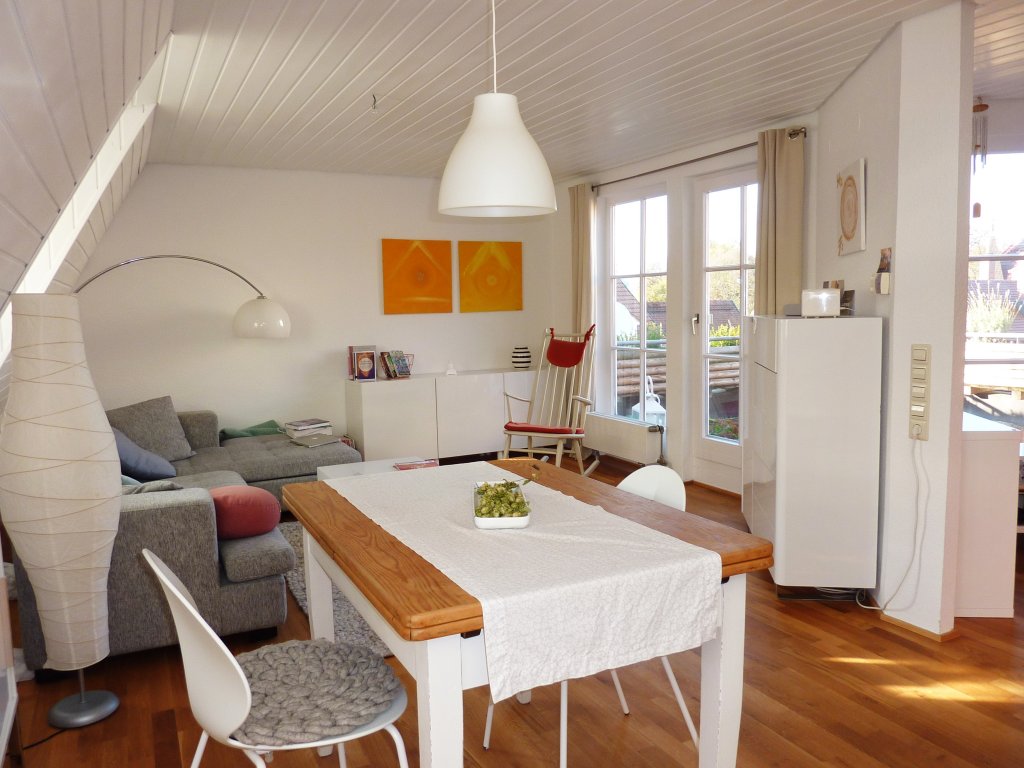 Sie besticht durch ihre Helligkeit und das gemütliche Flair. Schon der helle Eingangs-/Dielenbereich gibt den Blick auf die ca. 16 m² große - nicht einsehbare - sonnige Dachterrasse mit herrlicher Aussicht frei. Im Tageslichtbadezimmer (mit Wanne und WC) befinden sich die Anschlüsse für Waschmaschine und Wäschetrockner. Die beiden Schlafzimmer sind nach Osten ausgerichtet, die Küche und das geräumige Wohn-Esszimmer mit Ausgang zur Dachterrasse nach Süden. Die vorhandene, komplett ausgestattete Einbauküche (mit Herd, Backofen, Spülmaschine, Kühlschrank) kann kostenlos vom Vormieter übernommen werden.