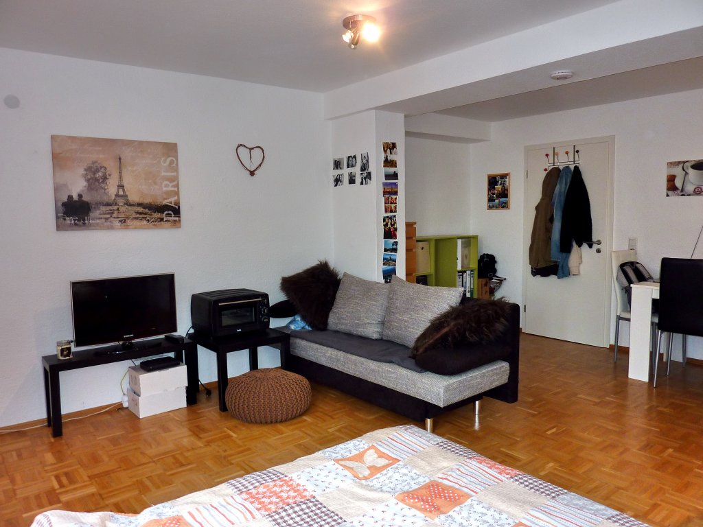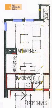 Die Wohnung ist wie folgt aufgeteilt: abgeschlossener Eingangsbereich mit großem Einbauschrank, hell gefliestes, modernes Badezimmer mit Dusche, Waschbecken, WC und Waschmaschinenanschluss, großer Wohn-Schlafraum mit abgetrennter Küchennische - inkl. Einbauküchenzeile. Gegebenenfalls kann noch ein kleiner Abstellraum im 2.Obergeschoß des Hauses zugeordnet werden.