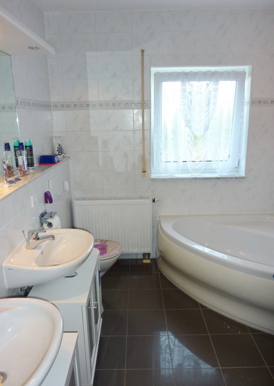 Komplettes Erdgeschoss mit Terrasse und Garten , neue Gas-Zentralheizung (2018), separates Gäste-WC + großes Tageslichtbad, Vollholz-Parkettboden in Eiche, SAT-Anlage