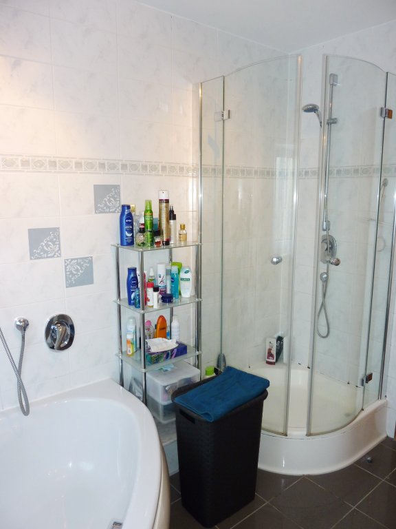 Zur Wohnung gehören ein eigener großer Kellerraum (mit Fenster in dem sich auch de Anschluss für Waschmaschine/Wäschetrockner befindet) und .