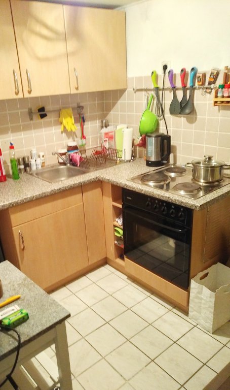 Souterrain mit eigenem Außeneingang, einfach ausgestattet, Gas-Etagenheizung, einfache Küchenzeile – ohne Kühlschrank, Bad mit Wanne und Waschmaschinenanschluss