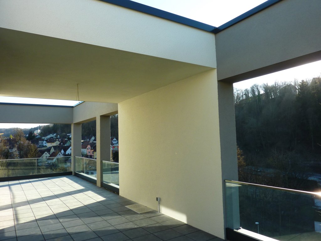 Diese einzigartige – nicht einsehbare - Wohnung ist nach Süden und Westen ausgerichtet. Sowohl von den Wohn- und Schlafräumen mit großzügigen Fensterflächen als auch von den Dachterrassen bietet sich eine herrlich freie Aussicht.