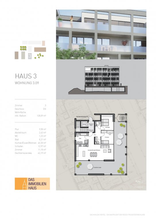 Diese sehr helle, großzügig geschnittene Wohnung (Nr. 3.09) befindet sich im obersten, dem 3. Obergeschoss des Hauses 3 im neuen, zentrumsnahen „Mühlenviertel“. In nur wenigen Gehminuten ist man bereits in der Ravensburger Alt-/Innenstadt, so dass man das Auto ruhig zu Hause lassen kann.