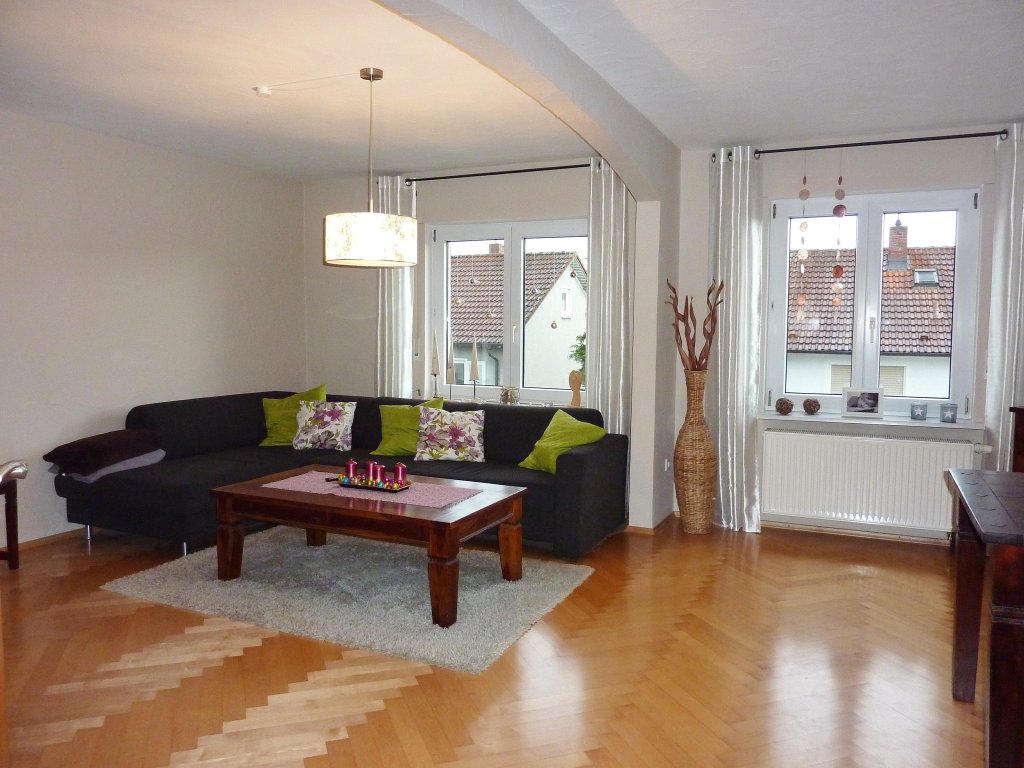 Diese gemütliche, helle Wohnung befindet sich im 1. Obergeschoss eines gepflegten 5-Familienauses in ruhiger Wohnlage der „alten“ Weingartner Unterstadt, nur ein paar Gehminuten vom Festplatz oder der Stadtmitte entfernt.