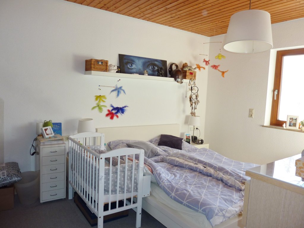 Die Wohnung wurde 2019 komplett noch frisch gestrichen, so wurden auch die Holzdecken weiß gestrichen. Aktuell werden nun auch noch die Wandfliesen im Bad weiß gestrichen.