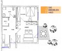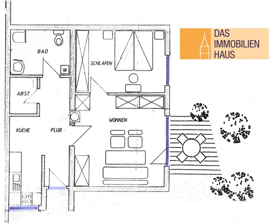 Sie hat einen separaten Haus-/Wohnungsaußeneingang und ist wie folgt aufgeteilt: Diele/Flur, Kochecke mit einfacher Einbauküche, Abstellraum, Badezimmer (mit Dusche, Waschbecken, WC, Waschmaschinenanschluss), Schlafzimmer und Wohnzimmer mit Ausgang zur großen sonnigen Terrasse.