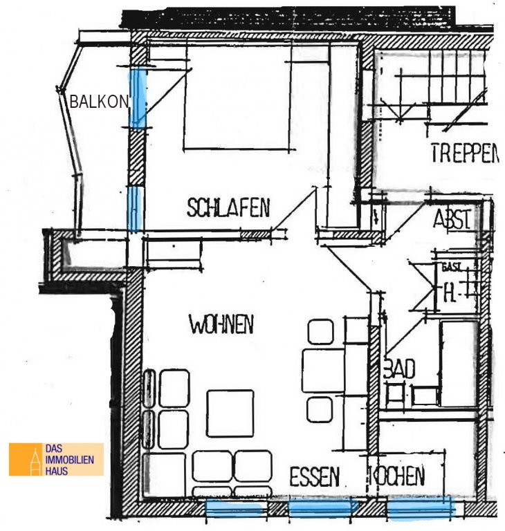 Diese Wohnung befindet sich in einem 6-Familienhaus in verkehrsberuhigter Zone der Ravensburger Altstadt. Sie liegt, neben einer weiteren 2-Zimmer-Wohnung, im 1. Obergeschoss.