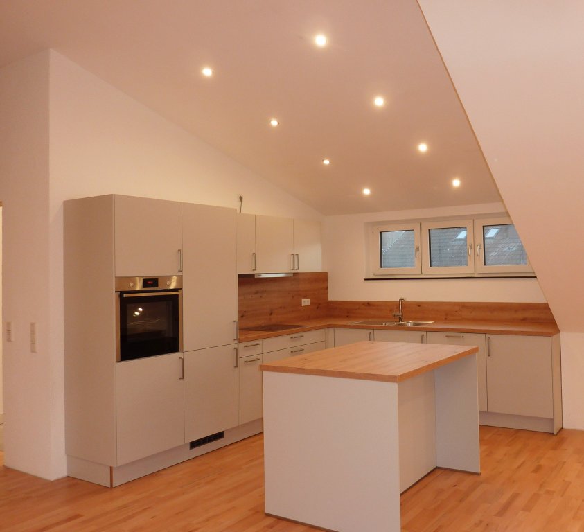 Diese Dachgeschosswohnung wird komplett neu erstellt. Sie hat eine Fußbodenheizung mit Parkettbelag, die Rollläden werde elektrisch betrieben. Neben dem kleinen "Aussichtsbalkon" ins Schussental vom Wohnbereich aus hat sie auch noch eine Dachterrasse mit etwa 10 m².