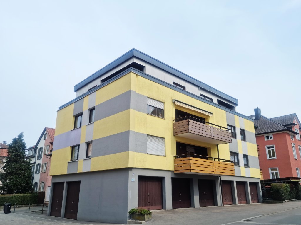 Diese Wohnung befindet sich im obersten Geschoss (3. OG) eines 1973 erstellten kleinen Mehrfamilienhauses. Verkehrsberuhigt gelegen, am Rand der nördlichen Altstadt und nahe der „Kuppelnau“, ist der Marienplatz in nur ca. 400 m fußläufig erreichbar.