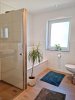 * Tageslichtbadezimmer mit Wanne, Dusche (mit Glaskabine), 2 Waschbecken, WC, zusätzlicher Handtuchheizkörper