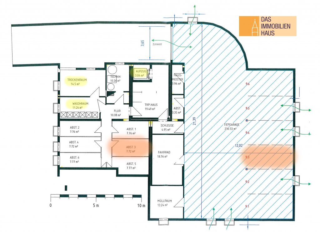 Im Untergeschoss befinden sich der zugewiesene Tiefgaragenplatz, der große, eigene Kellerraum sowie Wasch- und Trockenraum, Fahrrad- und Müllraum.