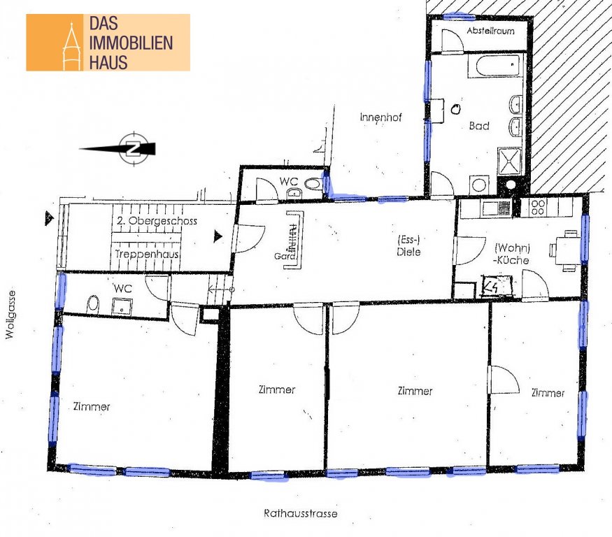 Diese große Wohnung befindet sich im 2. Obergeschoss (ohne Aufzug!) eines Wohn- und Geschäftshauses in zentraler Altstadtlage, in unmittelbarer Nähe zum Marienplatz.